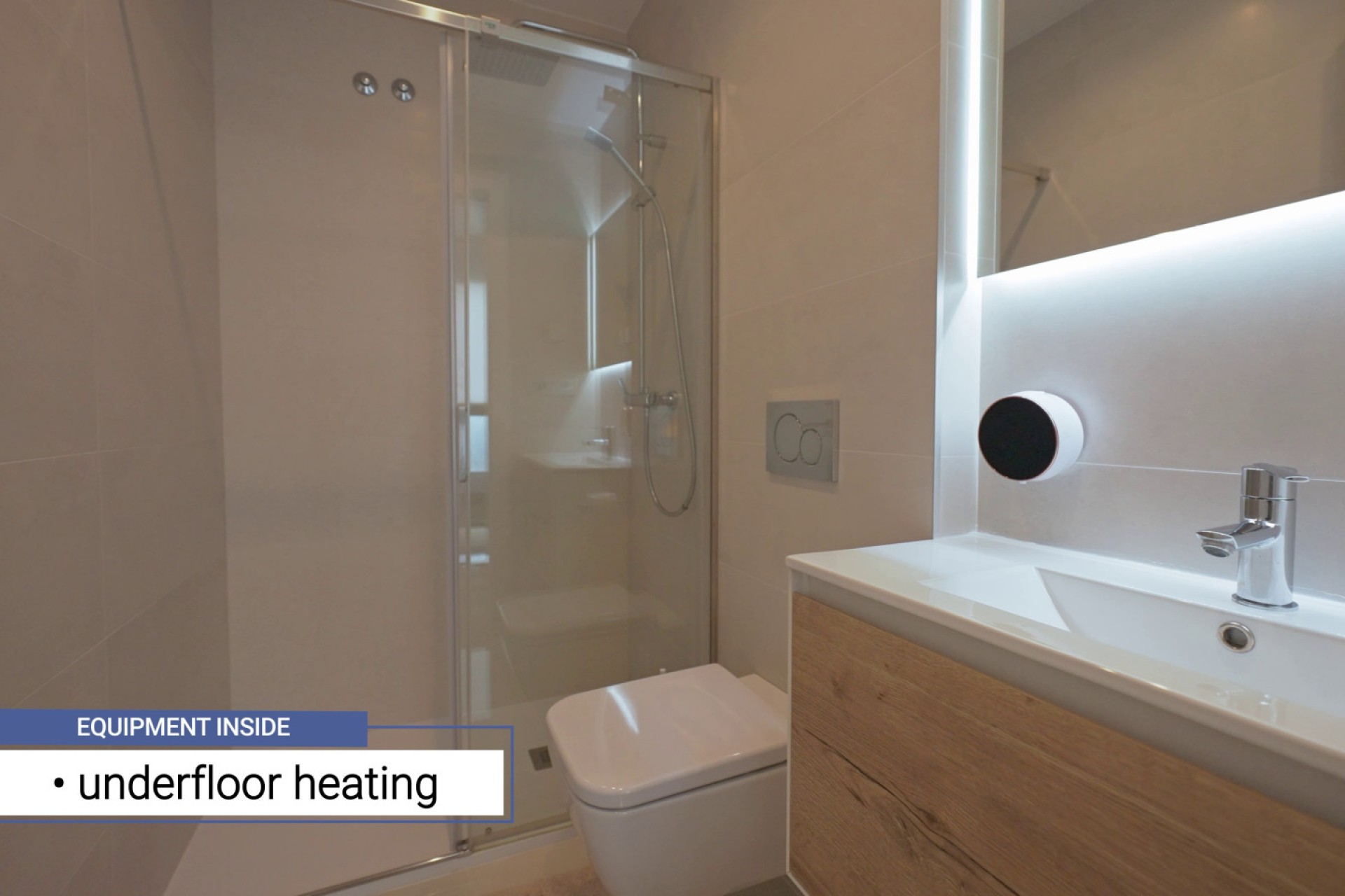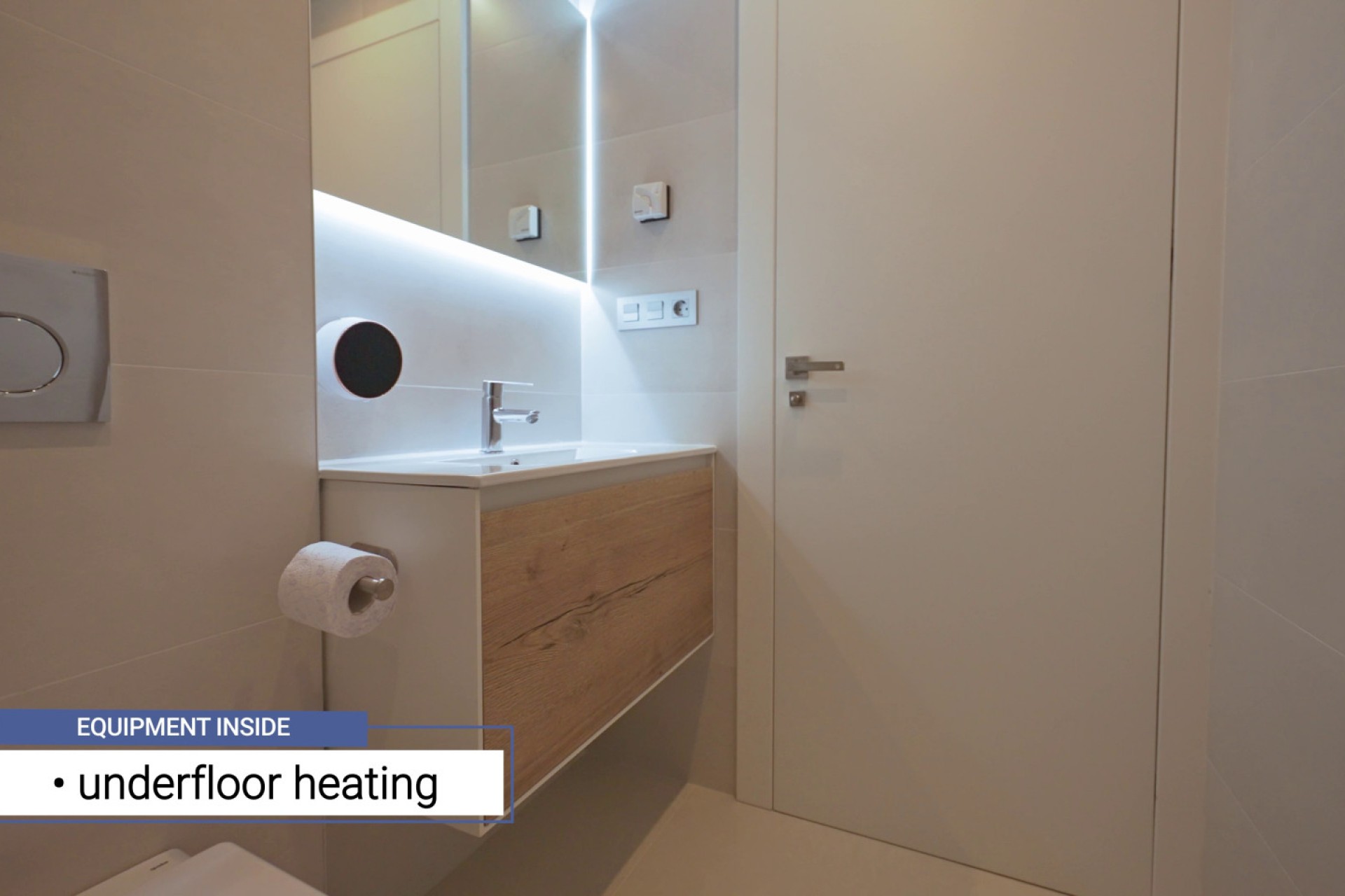 Es gibt: offentliche Schwimmbad, Tiefgarage, Terrasse, Spielplatz, zentralle Klima, Auszug, Intercom, Elektrische Rolladen, Haushaltstechnik, Mikrowellenofen, Fernseher, Кochherd, Geschirrspülmaschine, Waschmaschine, Kühlschrank, Eingebauter Kleiderschrank, Es ist vollständig möbliert, Highspeed-Internet, zentrale Elektrizitätsversorgung, zentrale Wasserversorgung, Schutzsignalisierung, gepanzerte Eingangstür.