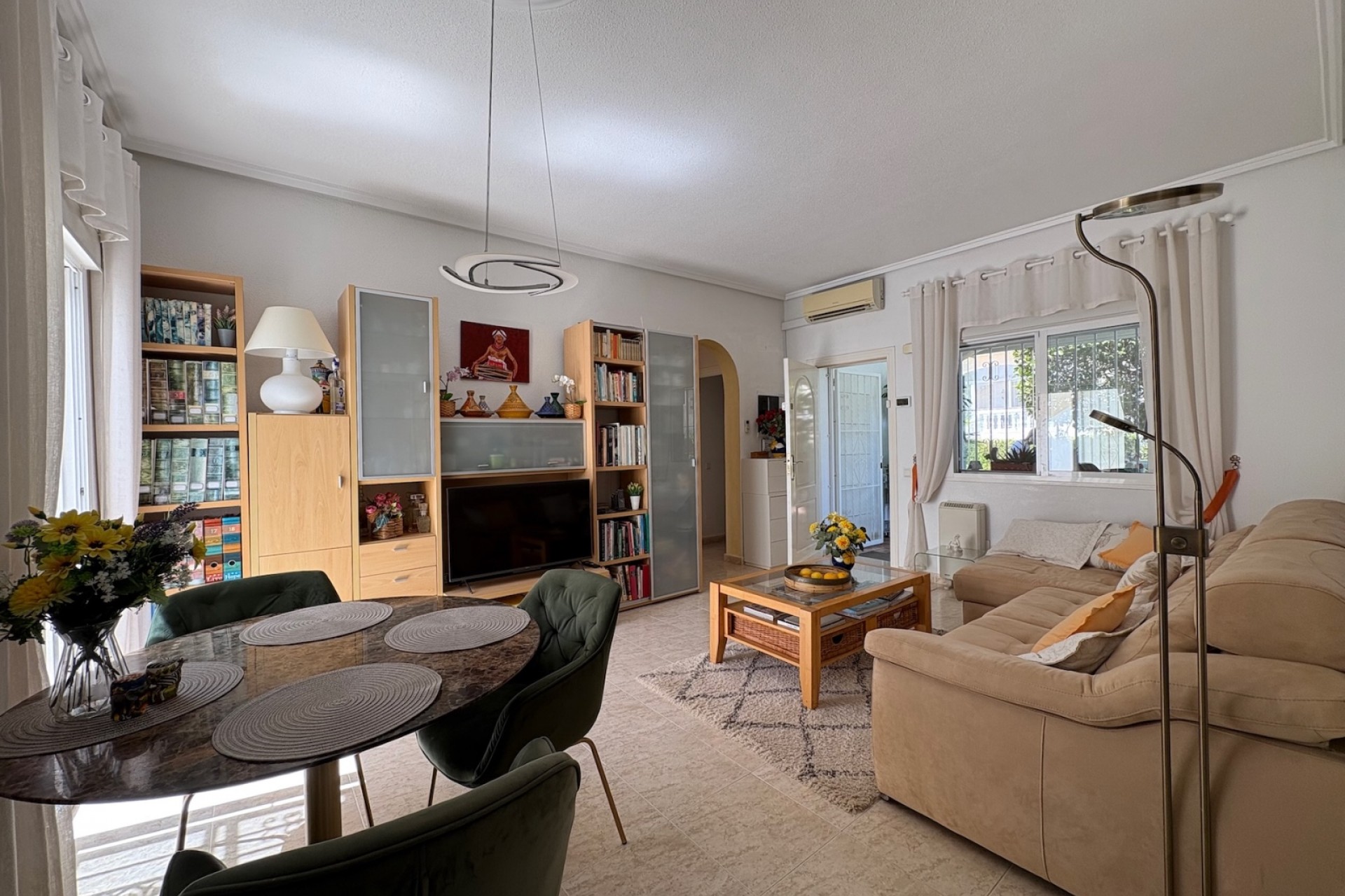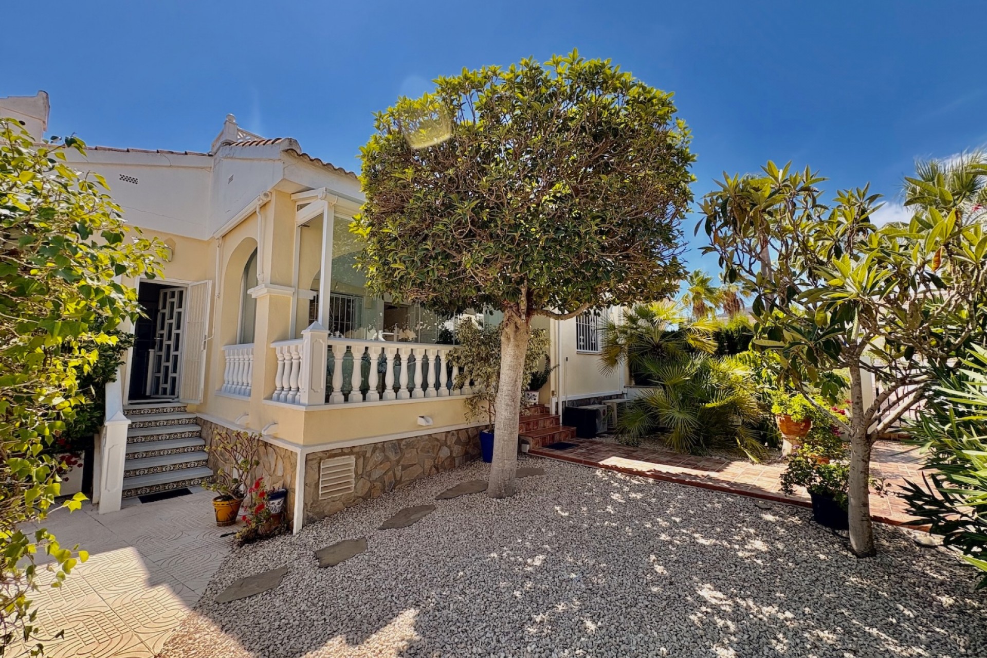 Private Wohnanlage „Conjunto Romeo“ Entdecken Sie dieses bezaubernde einstöckige Einfamilienhaus in der angesehenen Gegend von Plaza la Fiesta in Ciudad Quesada (Rojales). Gelegen in der exklusiven, geschlossenen Wohnanlage Conjunto Romeo, bietet diese Immobilie eine ruhige, sichere und familienfreundliche Umgebung. Das Grundstück umfasst 220 m², wovon 85 m² bebaut sind und auf einer Ebene für höchsten Komfort gestaltet wurden. Das Haus verfügt über eine elegante, verglaste Veranda von 17 m², ideal für die Nutzung das ganze Jahr über, sowie einen herrlichen 135 m² großen privaten Garten mit wunderschönen Bäumen und Hecken, ausgestattet mit einem Grillbereich und einem gemütlichen Essbereich im Freien, perfekt für Zusammenkünfte. Auf dem Dach befindet sich ein 20 m² großes privates Solarium, ideal zum Entspannen unter der mediterranen Sonne oder um freie Ausblicke zu genießen. Im Keller befindet sich ein grosszügiger Abstellraum, der das Haus perfekt komplimentiert für lange oder ganzjährige Aufenthalte. Das Haus wird komplett möbliert und mit Haushaltsgeräten ausgestattet geliefert, bezugsfertig. Es verfügt über eine Klimaanlage für ganzjährigen Komfort sowie einen praktischen Abstellraum im Keller, ideal zur Aufbewahrung all Ihrer Gegenstände. Ein weiteres Highlight ist die Nähe zum Gemeinschaftspool, der nur von wenigen Nachbarn genutzt wird, was Privatsphäre und hervorragende Pflege garantiert. Plaza la Fiesta in Ciudad Quesada ist ein sehr gefragtes Gebiet aufgrund seiner erstklassigen Lage. Nur wenige Schritte entfernt finden Sie Supermärkte, Restaurants, Apotheken, ein medizinisches Zentrum, Banken und öffentliche Parkanlagen. Zudem ist es nur eine kurze Autofahrt von den Stränden von Guardamar, dem Golfplatz La Marquesa entfernt und bietet eine hervorragende Anbindung an Alicante und Torrevieja. Diese Immobilie ist eine einzigartige Gelegenheit, sei es für das ganzjährige Wohnen, als Ferienhaus oder als Investition in einer stark nachgefragten Gegend. Kontaktieren Sie uns für weitere Informationen oder um eine unverbindliche Besichtigung zu vereinbaren!