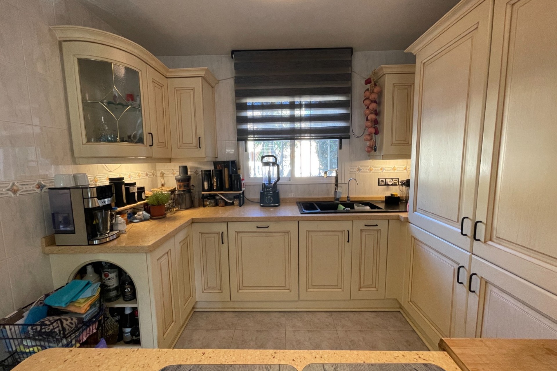 Encantadora villa en Benijófar Ubicada en una tranquila y popular zona, entre Rojales y Ciudad Quesada, esta villa de dos plantas se asienta sobre una parcela de 500 m². La planta superior ofrece recibidor, salón, cocina-comedor, dos dormitorios y dos baños (uno en suite) con una acogedora terraza. La planta inferior cuenta con salón/dormitorio adicional, cocina, tres dormitorios y un baño, sumando un total de 5 habitaciones.La parcela dispone de piscina, varios patios, cocina exterior con comedor, jardín y espacio de aparcamiento, ideal para familias.La propiedad cuenta con paneles solares que optimizan el consumo energético, así como una bomba de calefacción para la piscina, perfecta para disfrutar del agua durante todo el año.Benijófar es un auténtico pueblo español con todos los servicios necesarios: restaurantes, farmacia, banco y peluquería, además de opciones de ocio como golf y rutas de senderismo. La playa y Torrevieja están a solo 15 minutos en coche.Perfecta para quienes buscan una casa espaciosa, cuidada y con un jardín maravilloso. Bienvenidos a su nuevo hogar.