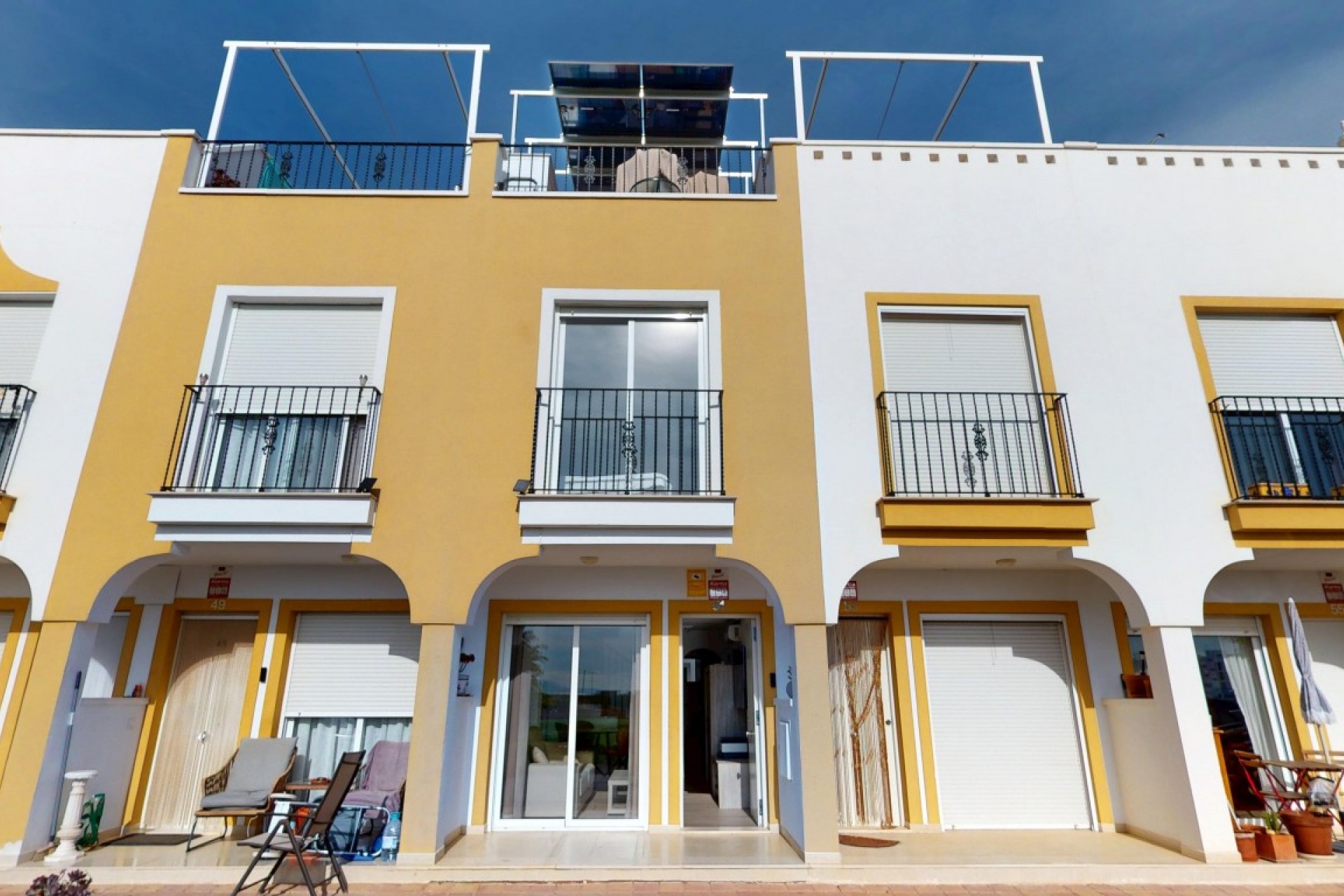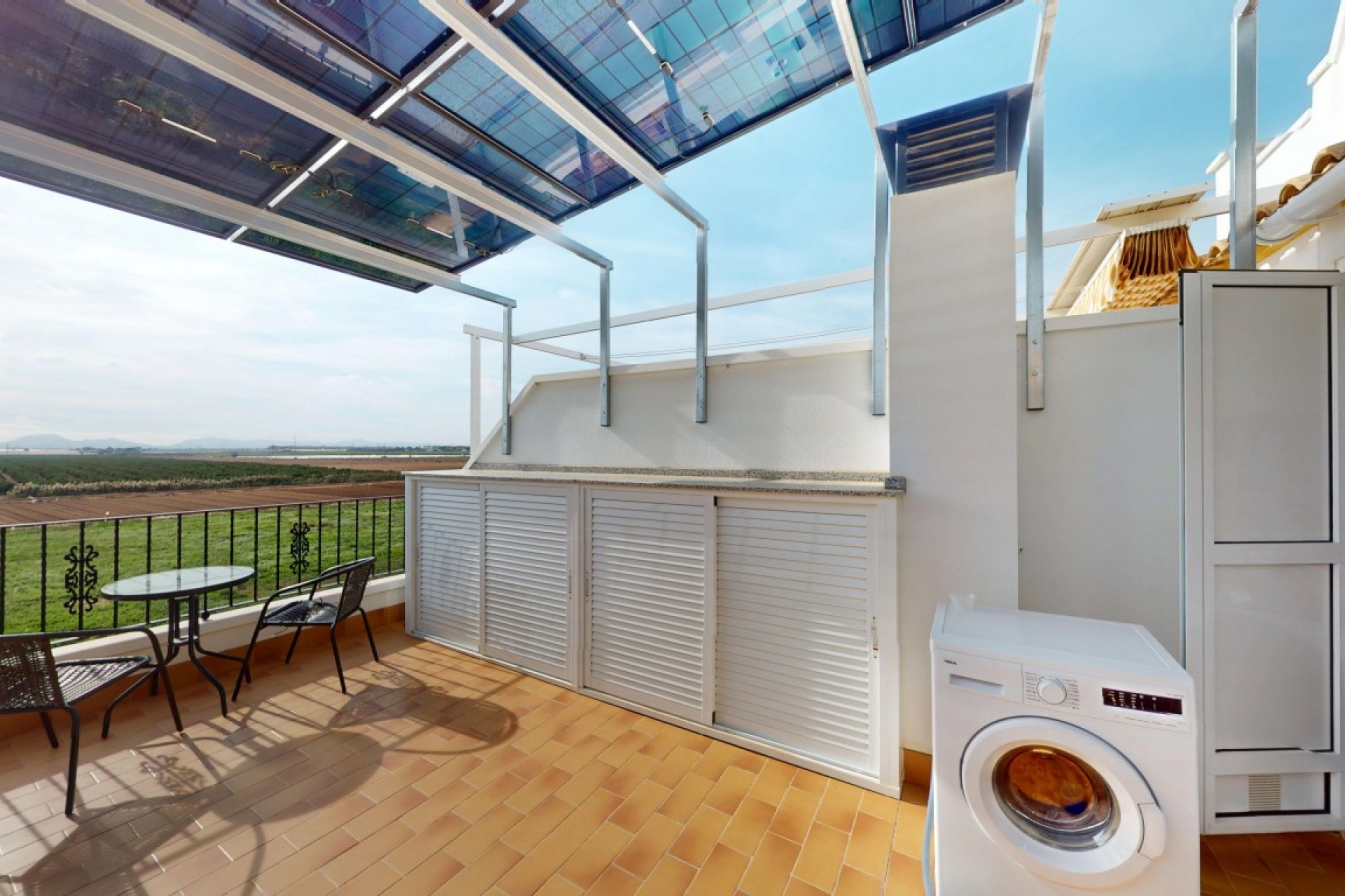 Deze charmante woning in Santa Rosalia, gerenoveerd in 2021, biedt een comfortabele en lichte woonomgeving. De woning beschikt over drie slaapkamers en een badkamer, met een extra apart toilet op de begane grond. Dankzij de ligging op het zuiden geniet de woning de hele dag van natuurlijk licht en biedt het een prachtig open uitzicht over de omliggende velden. Het solarium op de bovenverdieping is de perfecte plek om te ontspannen terwijl u geniet van het prachtige landschap. De woning is uitgerust met tien zonnepanelen en airconditioning voor zowel verwarming als koeling, wat het hele jaar door comfort garandeert. Bewoners kunnen ook genieten van het gemeenschappelijke zwembad. Deze woning ligt op slechts vier kilometer van de stranden van Mar Menor en wordt volledig gemeubileerd verkocht. Het is een ideale keuze voor permanente bewoning of als vakantiehuis.